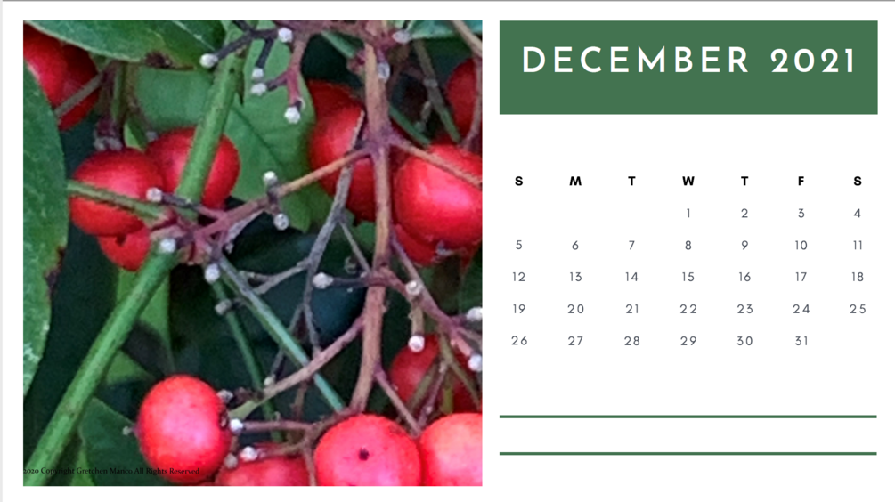 You'll get a PDF file containing one page for each month of 2021. Each page has a monthly calendar, a photo, and two lines for notes. *This is a non-refundable digital product and is provided as a gift to the person downloading.